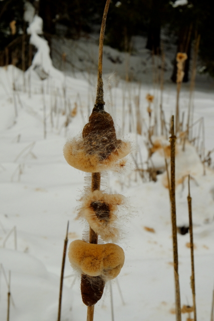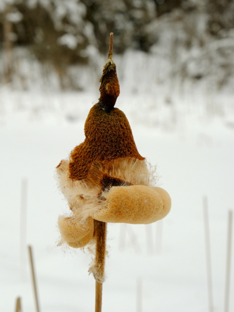 Rosną nad nimi pałki wodne ciekawie popękane od mrozu i tworzące fantastyczne kształty. Nie mógłbym tego nie sfotografować.