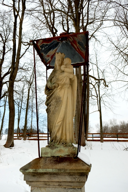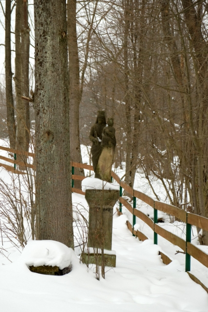 Następnie przechodzę nieco dalej w kierunku Krzywej bo stoi tam piękna i znana wszystkim miłośnikom Beskidu Niskiego figurka Matki Boskiej z Dzieciątkiem z 1900 roku. Znana bo przebiega tędy Główny Szlak Beskidzki.
