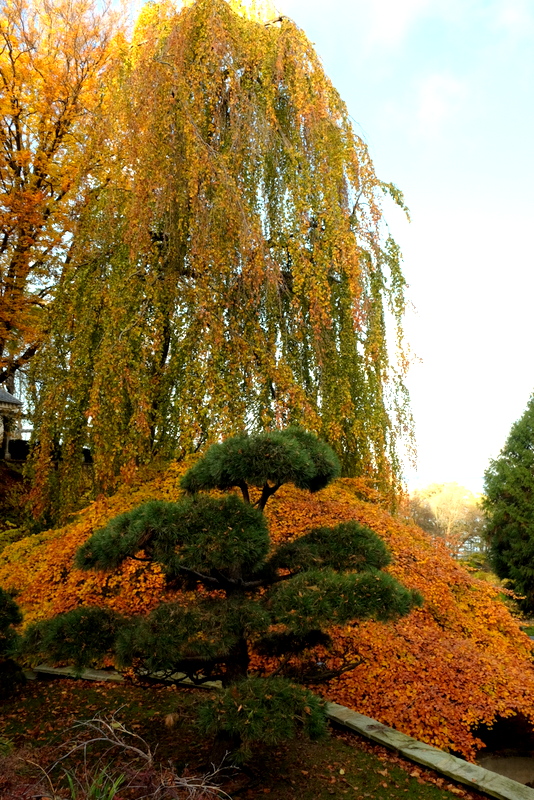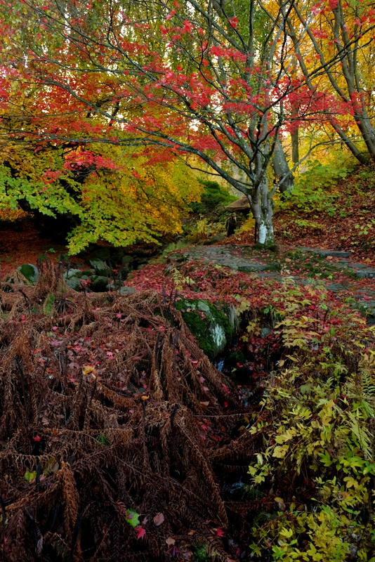 Spływający strumień i kamienne ścieżki ogrodowe wysypane żwirkiem, wiją się między nasadzeniami ciekawych egzotycznych roślin poprzez pochyłe tereny opadającego w stronę morza stoku. Drewniane mostki nad szemrzącym strumieniem i drewniana ogrodowa architektura oraz intrygujące buki karłowate rosnące wraz z egzotycznymi roślinami często japońskiego pochodzenia, dopełniają atmosferę spokoju i wyciszenia. Do tego kontrastujące jesienne liście i zimozielone rośliny zachwycają bogactwem barw.