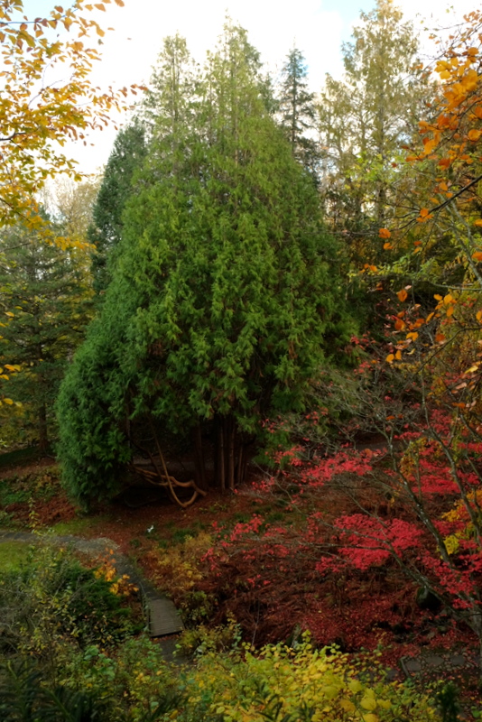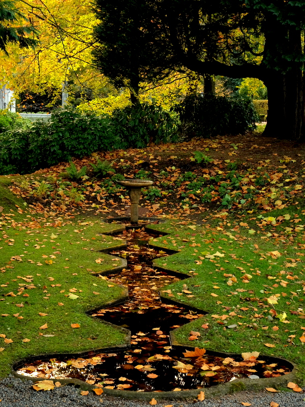Mnóstwo tu rododendronów otaczających i skrywających betonowy mostek nad strumieniem co dodaje tylko tajemniczości temu ogrodowi. Dziś te rododendrony urosły tak wysoko, że można wejść do ich tunelowego wnętrza.