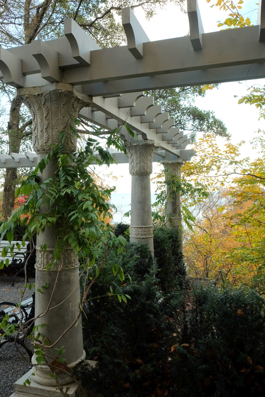 Patrząc z przeciwnej strony powierzchnia stawu wydaje się jednoczyć z widocznym czasami (przy dobrej pogodzie) morzem daleko na horyzoncie. Powierzchniowo to chyba największy z ogrodów – przynajmniej takie robi wrażenie. Na pewno jednak jest najdłuższy.