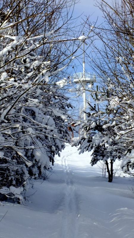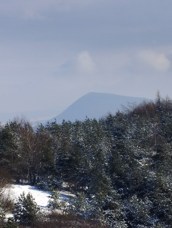 Widoki stąd są podobne do tych z wieży jednak nie tak rozległe i nie we wszystkich kierunkach. O zimowych widokach z Grzywackiej pisałem w tym artykule (podobnie jak i o rezerwacie przyrody „Łysa Góra” skrajem, którego będziemy teraz się poruszać).