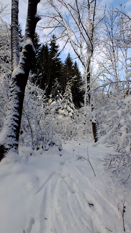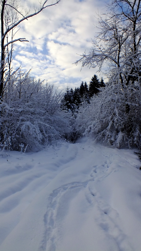 Śniegu tu dużo więcej, jest puszysty i puki co nie ma żadnych ludzkich śladów. Są za to bardzo liczne tropy dzikich zwierząt.