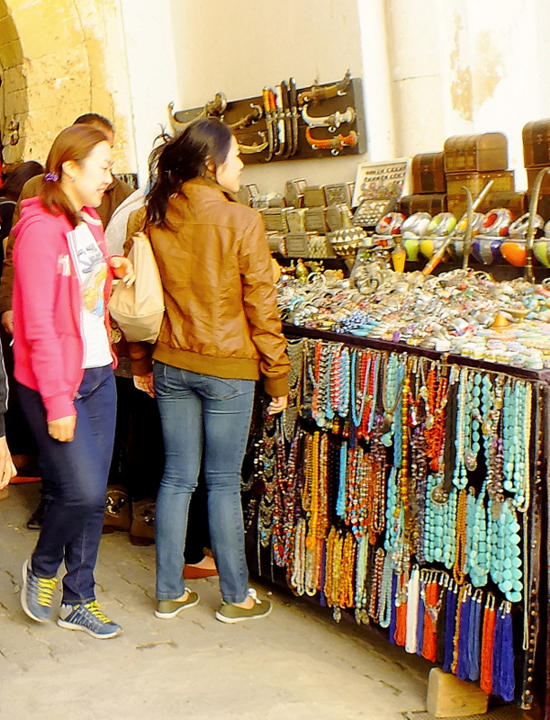 Idąc dalej mijamy galeryjki z obrazami lokalnych czy też przyjezdnych malarzy. Małe sklepiki i niewielkie kawiarenki oraz stoiska ze smażonymi pączkami maczanymi w cukrze czy też z ciastem nadziewanym daktylami.