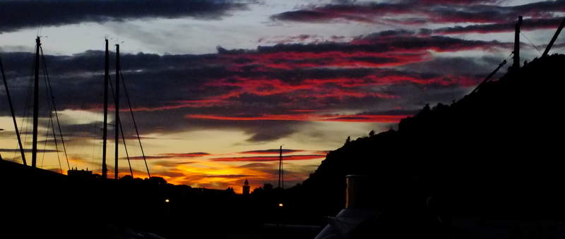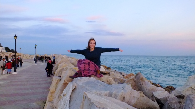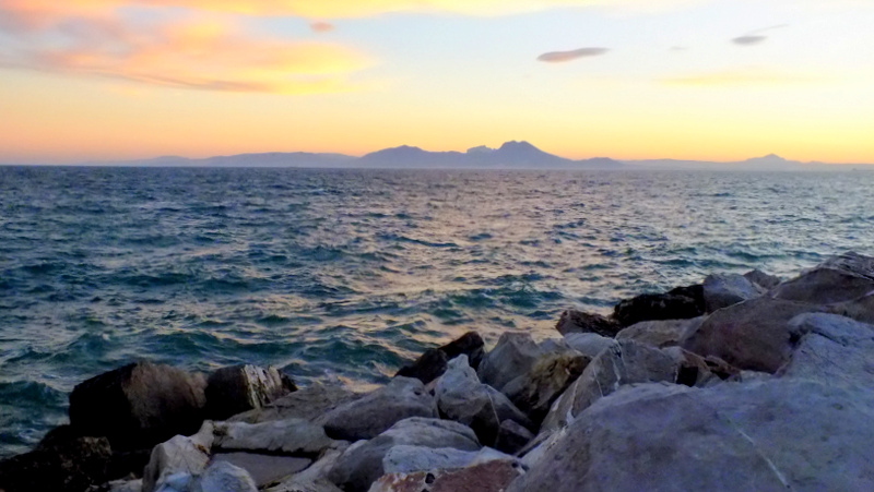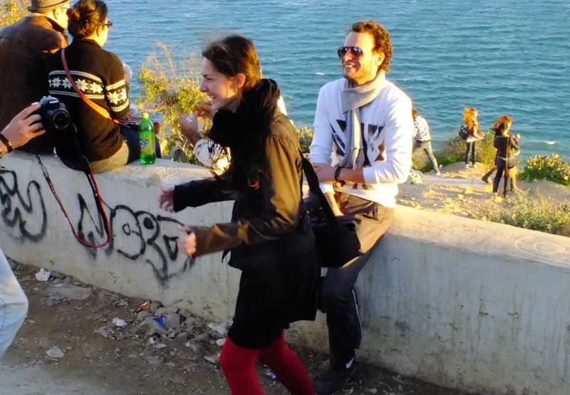 Później, już w porze zachodu słońca usiedliśmy przy stolikach należących do kawiarni Cafe Glacier i zamówiliśmy herbatę miętową z piniowymi orzeszkami. Spragnionych klientów było sporo więc na herbatę musieliśmy bardzo długo czekać. To długie czekanie wynagrodził nam piękny zachód słońca i ciekawa, zajmująca rozmowa z nowo poznanymi tunezyjczykami.