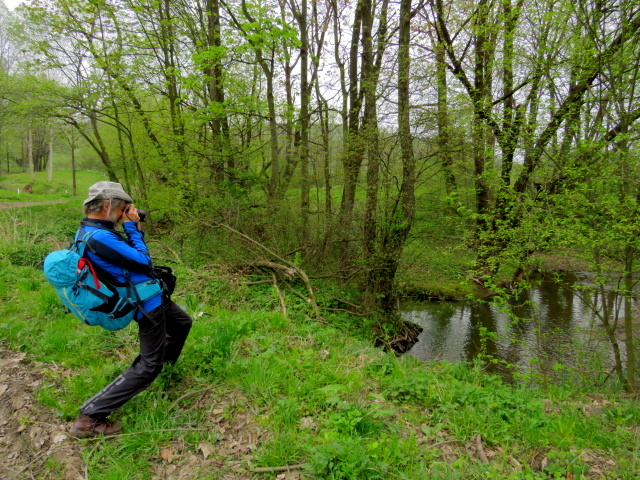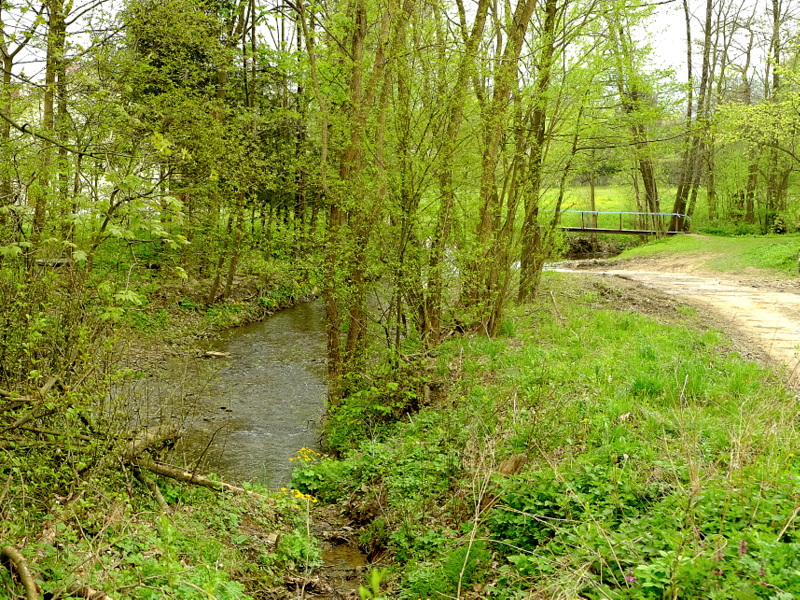 Aby więc urozmaicić sobie nieco wędrówką opuszczamy wygodną polną dróżkę schodząc w stronę Bednarki. Idziemy tak aby znależć dogodne miejsce, w którym będzie można przekroczyć Bednarką – bo nie ma tu żadnych kładek, czy mostków.
