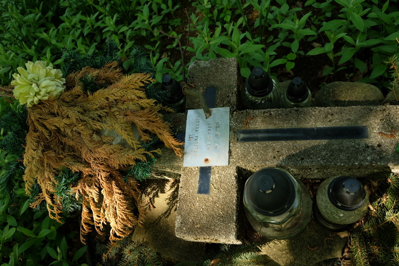 W tym miejscu muszę dokonać ważnego uzupełnienia: Otóż – po kilku latach od opublikowania tego artykułu – podczas jednej z późniejszych wizyt na tym cmentarzu udało mi się wreszcie odnaleźć grób Teodora Poliwki. Znajduje się on w północno-zachodniej części cmentarza, w niewielkim obniżeniu terenu.