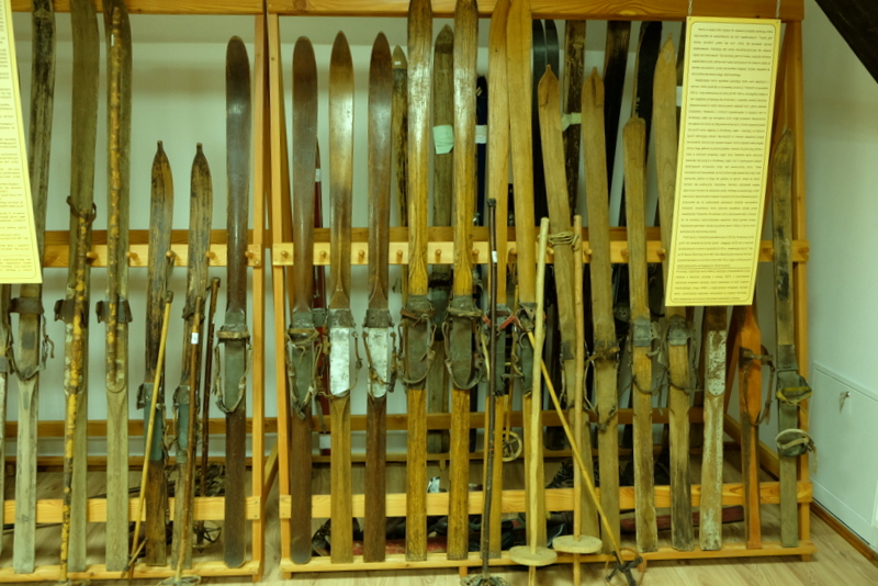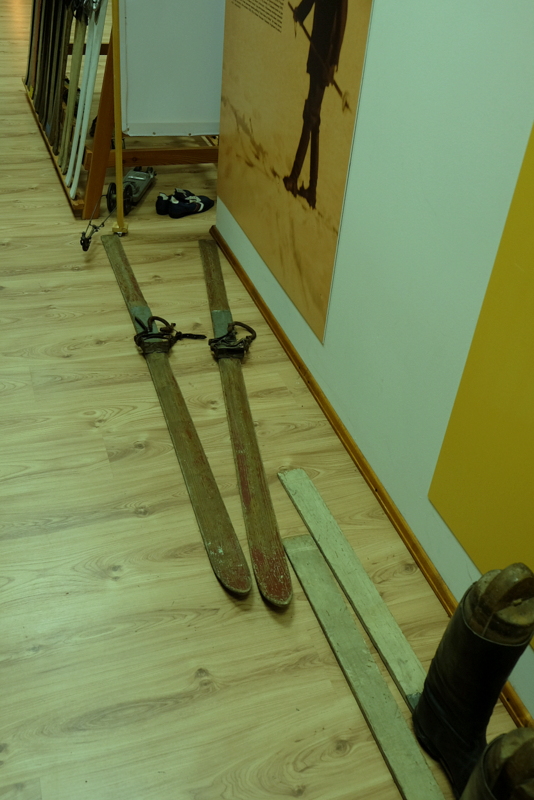 Do najcenniejszych eksponatów należą najstarsze narty. Na jednej z nich widnieje odręcznie wykonany napis z datą „1917 r.”. Druga w całości wycięta z bukowej deski, wyposażona w prymitywne wiązanie z metalowymi szczękami i napalcowym rzemieniem zapinanym na proste sprzączki. Na ślizgu widnieje napis „Rok 1925. Iwonicz”.