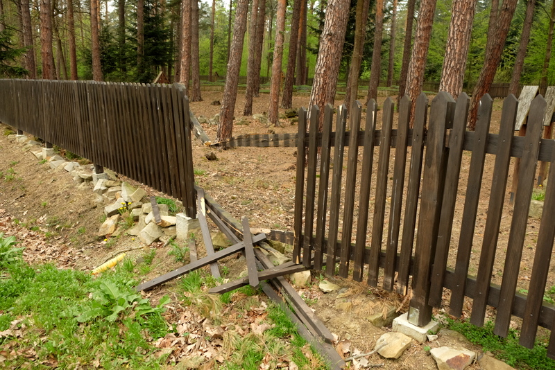 W pierwszej kwaterze widać wyrwę w ogrodzeniu – to skutek wichury, która powaliła drzewo. Pewno wkrótce płot zostanie naprawiony bo drzewo zostało już usunięte.