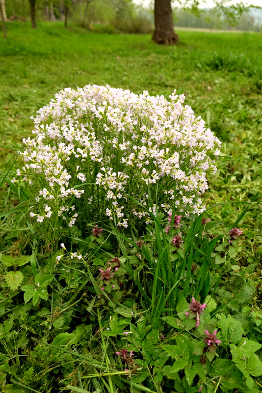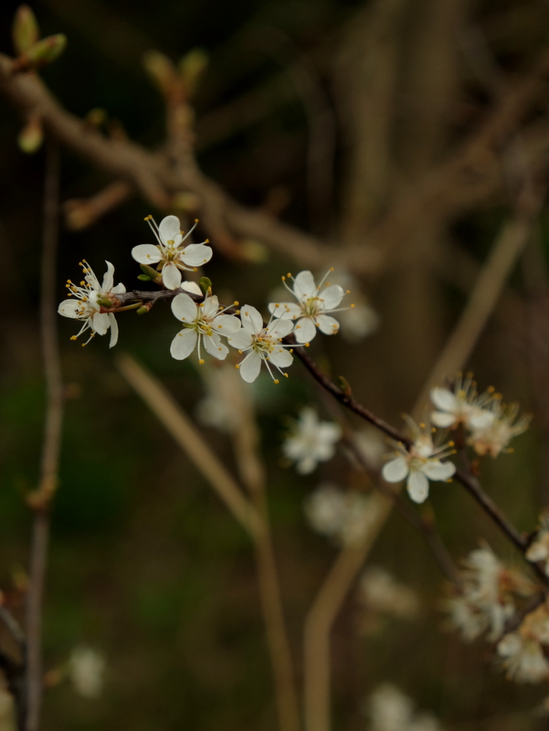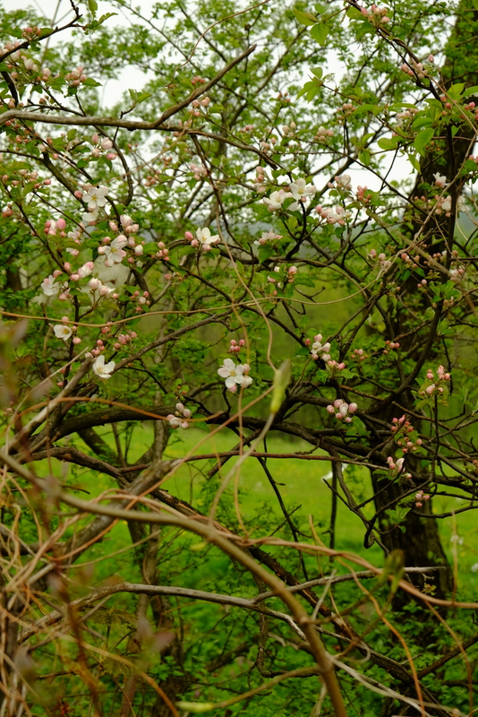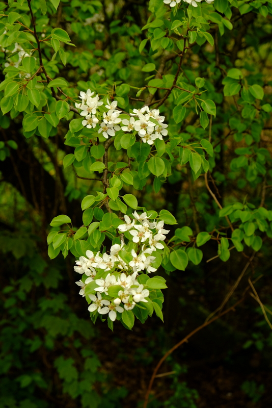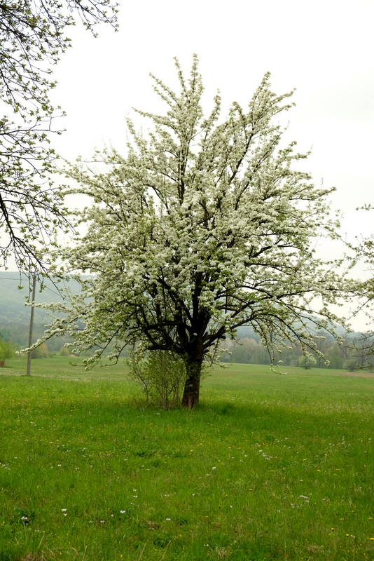 Przy drodze rośnie mnóstwo kwitnących już różnych krzewów, wśród których przeważają tarniny. Można spotkać kwitnące grusze, jabłonie i trześnie. Rosną tu też olchy, brzozy i czeremchy. Jest wiosna, początek maja więc jest pięknie!