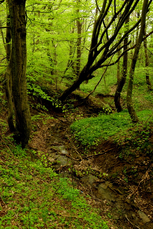 Wkrótce, po przekroczeniu mostu zaczyna się przełomowy odcinek Bednarki. Ta niewielka rzeczka przeciska się tutaj między południowymi stokami Cieklinki i północnymi zboczami Ostrzeża.