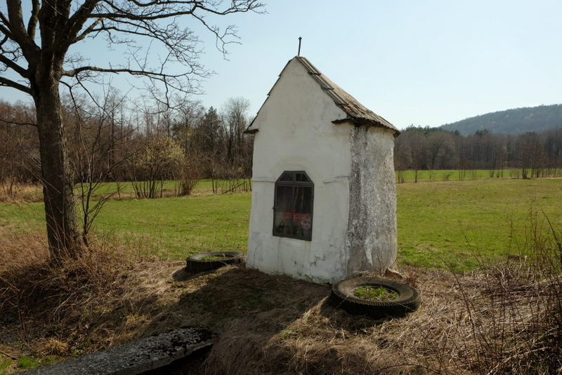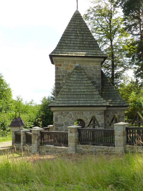 Pierwsze to łemkowska kapliczka słupowa stojąca przy drodze z Nowego Żmigrodu do Gorlic.