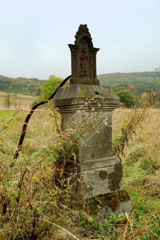 Po chwilach spędzonych na cmentarzu i cerkwisku siadam na rower i jadę dalej. Niedaleko jednak bo znów co kawałek będę się zatrzymywał. A to przy kolejnych cokołach zniszczonych krzyży aby uchwycić je obiektywem aparatu, a to znów namierzyć jakiś ciekawy widok, czy inny obiekt.