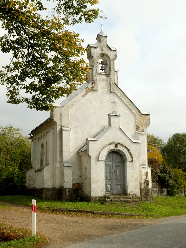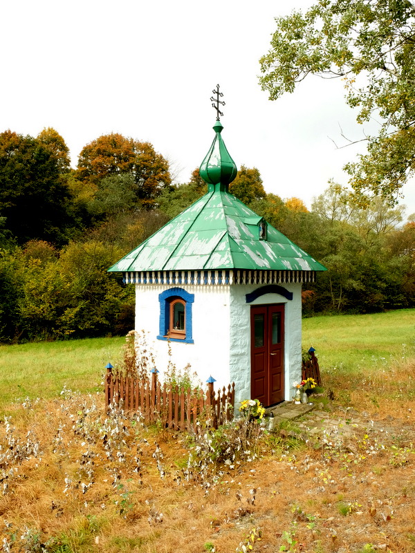 Jadąc dalej dojeżdżam do dużej, murowanej, białej kaplicy z 1902 roku p.w. Jana Chrzciciela by tutaj skręcić w odchodzącą w prawo drogę. Tą drogą pojadę dalej przez Wolę Wyżną i Rudawkę Jaśliską do Jasiela.