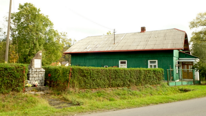 Trochę dalej, w stronę Woli Nżnej jest jeszcze jedna ciekawostka – przy zielonym, drewnianym domu zachował się relikt PRL-u.