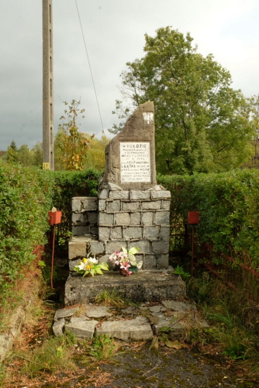 Siadam na rower i jadę dalej zatrzymując się dopiero przy obelisku z tablicą poświęcony pamięci Kurierów Beskidzkich ZWZ-AK. Pomnik ten ustawiony przez działaczy brzozowskiego oddziału PTTK odsłonięto w 1981 roku. I to tu właśnie kończy się szlak trasy kurierskiej JAGA-KORA.