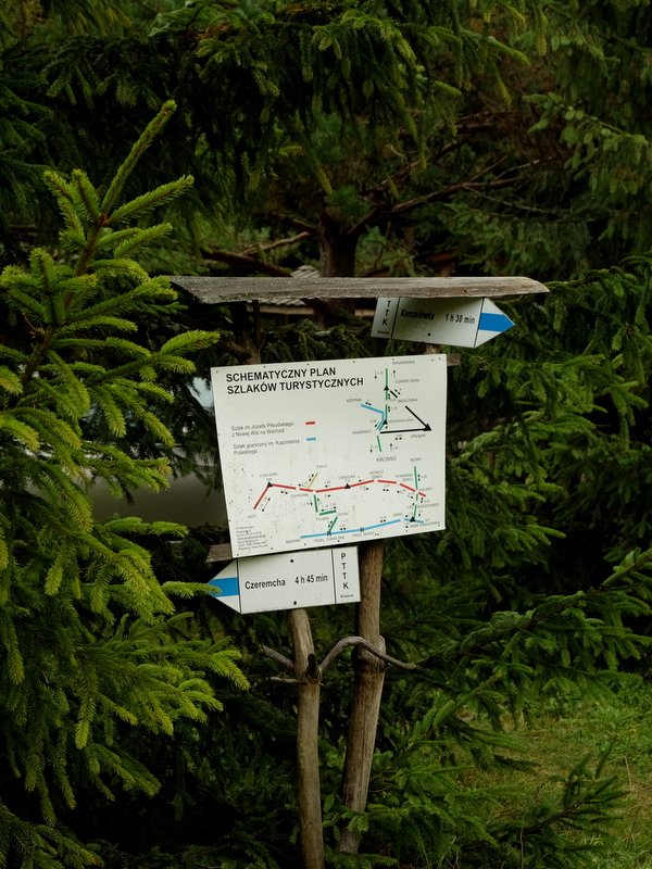 Zaraz za polem biwakowym droga skręca na wschód a na południe odgałęzia się od niej ścieżka, którą poprowadzono niebieski szlak PTTK. Szlak ten doprowadza do granicy aby dalej, już granicą wyprowadzić na Kanasiówkę, Pasikę, Danawę i dalej poprowadzić do Łupkowa.