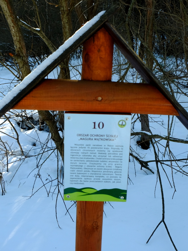 Tu też zaczyna się największy w Magurskim Parku Narodowym, Obszar Ochrony Ścisłej „Magura Wątkowska” o czym informuje stosowna tablica. Chroni się tu źródłowy obszar zlewni potoku Kłopotnica oraz źródłowe potoki tworzące Bednarkę. Także lasy bukowo-jodłowe o naturalnym charakterze, tworzące duży, nieprzerwany kompleks pozwalający