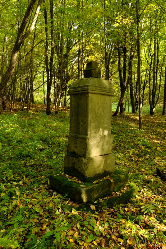 Tutaj w oddaleniu od siebie znajdziemy dwa zachowane kamienne cokoły ale niestety, już bez krzyży.