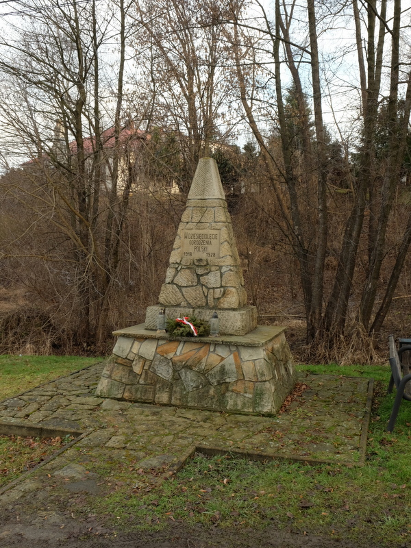 We wsi, pod skarpą, na której stoi budynek dawnej szkoły umiejscowiony jest kamienny pomnik z 1928 r, który poprzednio stał w innym miejscu. W nowe miejsce został przeniesiony w 2011 roku z powodu modernizacji drogi Kobyle – Jazowa. Pomnik ów wzniesiono w 10-tą rocznicę odzyskania przez Polskę niepodległości.