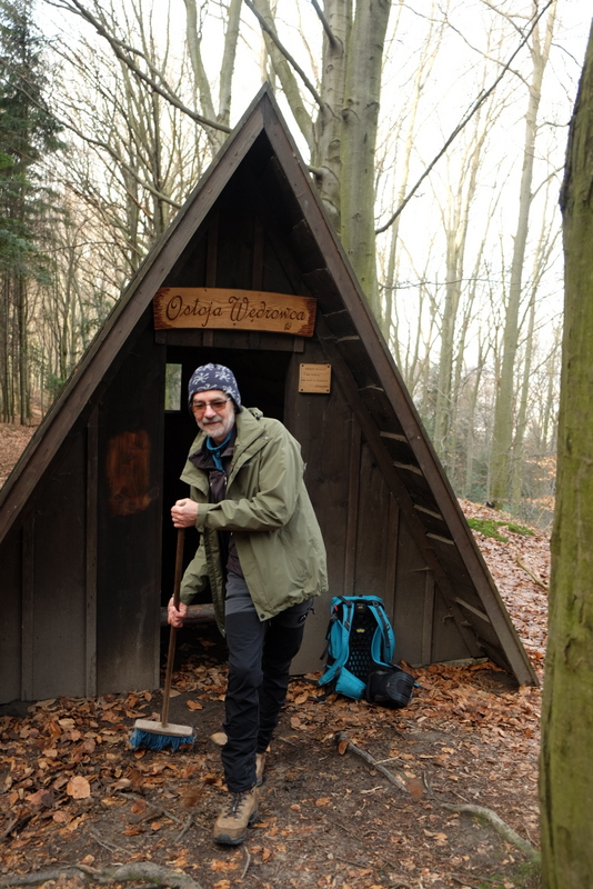 Około sto pięćdziesiąt metrów dalej dochodzimy do całkiem przyzwoitego deszczochronu „Ostoja Wędrowca”.