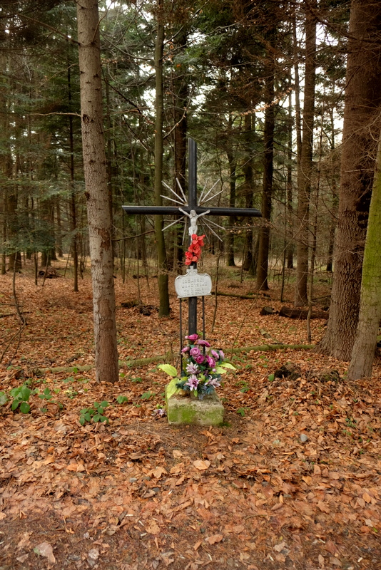 Zaraz po wejściu do lasu rzuca się w oczy skromna mogiła z 1994 roku. Prawdopodobnie ktoś zmarł tutaj lub uległ śmiertelnemu wypadkowi.