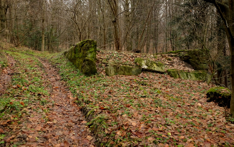 Podczas tej wędrówki grodziska nie odwiedziliśmy bo plany były nieco inne a ponadto towarzyszył nam młody pies. Kilka dni później wybrałem się w to miejsce sam dysponując większą ilością czasu i możliwości na spenetrowanie tego miejsca. Przeszedłem się wtedy przez przysiółek Rzym i wzniesienie Ostatek na grzbiet Herbów usłany ostańcami skalnymi. Następnie na niewielkiej przełączce opuściwszy grzbiet Herbów zszedłem plątaniną leśnych dróżek do nieczynnego kamieniołomu.