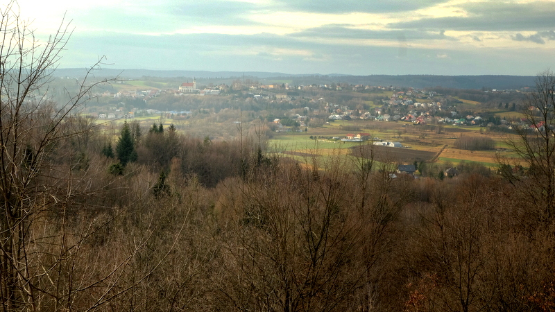 W dalszym ciągu idziemy leśną drogą przy której nie ma o tej porze roku nic co zwracałoby naszą uwagę. W końcu docieramy do przysiółku Kobyla nazywanego – Góra. Tutaj, po wyjściu na otwarty teren, odsłania się widok na Pasmo Klonowej Góry z wyraźnie zaznaczoną, stożkową sylwetką Chełmu.