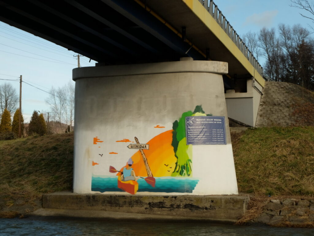 Po przejściu mostem nad Wisłokiem kierujemy się na północ. Trzeba by tu dodać, że poniżej mostu znajduje się przystań kajakowa zwana „Przystanią Doliny Wisłoka”. Warto wiedzieć, że rzeka Wisłok w tych okolicach doskonale nadaje się do kajakowych spływów.
