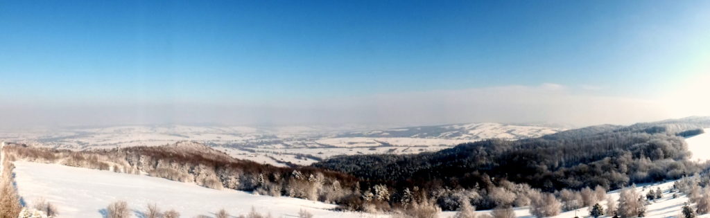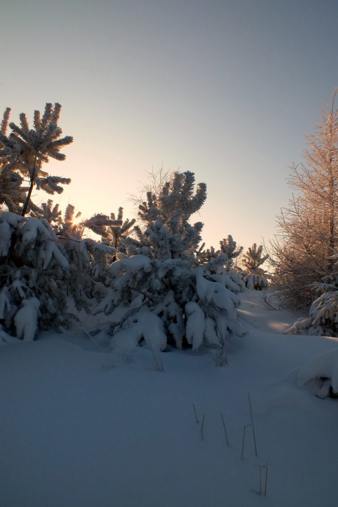 Styczeń 2012 roku był śnieżny więc na nartach spędzałem sporo wolnego czasu. Któregoś wyjątkowo pięknego, słonecznego i mroźnego dnia wybrałem się na Łysą Górę. Gdy ok. 10 rano dojechałem do Nowego Żmigrodu termometr pokazywał minus 20 stopni Celsjusza. Zimno! Wyż, słońce pięknie świeci i niebo błękitne, wszystko wskazuje na to, że mamy inwersję. Fajnie – bo będą rozległe widoki i wyjdą piękne zdjęcia! A to cieszy!