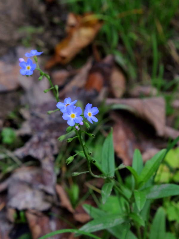 Dom otoczony starymi, zdziczałymi już drzewami owocowymi oraz samosiejkami pospolitych drzew i krzewów. Kiedyś musiał być tutaj rozkwiecony ogródek bo w kilku miejscach rosną kwitnące o tej porze roku pospolite marcinki.