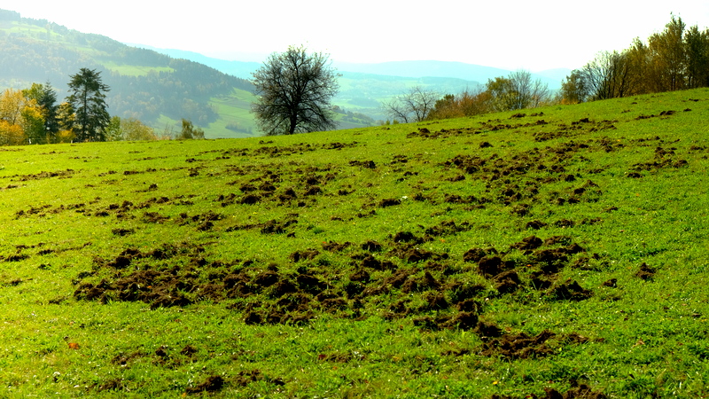 Później przechodziliśmy obok łąk zrytych przez stadko dzików.