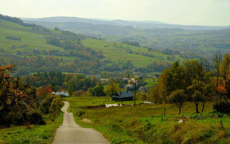W stronę doliny Ropy schodziliśmy krętą stokówką …