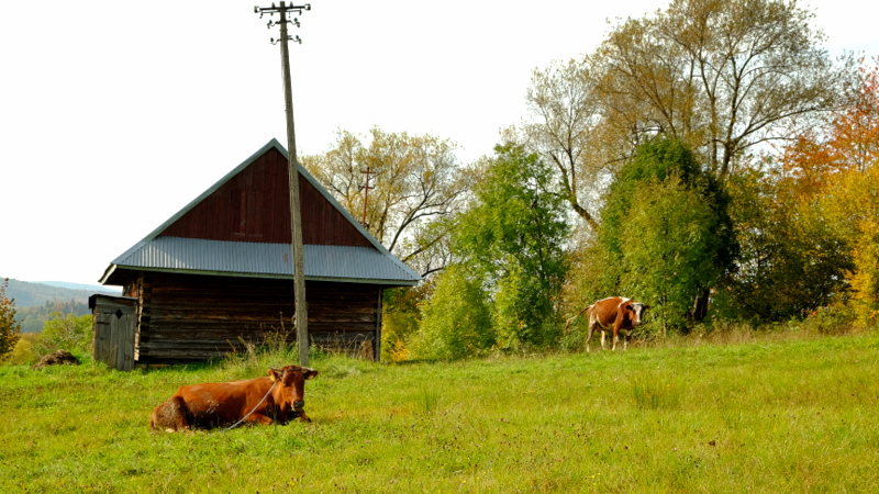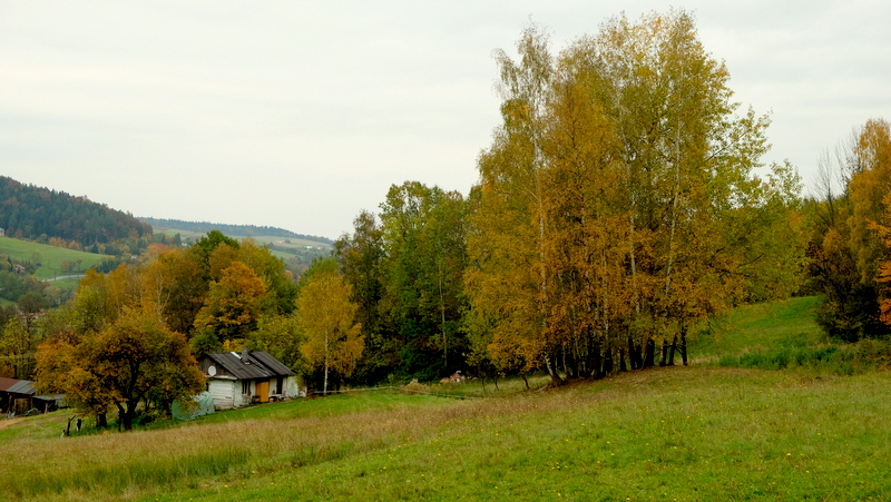 Po wyjściu z lasu znajdujemy drogę i przez przysiółek Doliny idziemy do kolejnego przysiółka Szymbarku, którym jest Wólka.