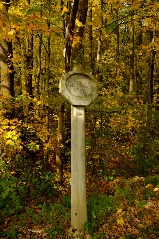 Obok drogi krajowej nr 28 przy zagajniku stoi betonowy słupek-drogowskaz wskazujący drogę do cmentarza z I Wojny Światowej nr 73 – Szymbark-Łęgi.