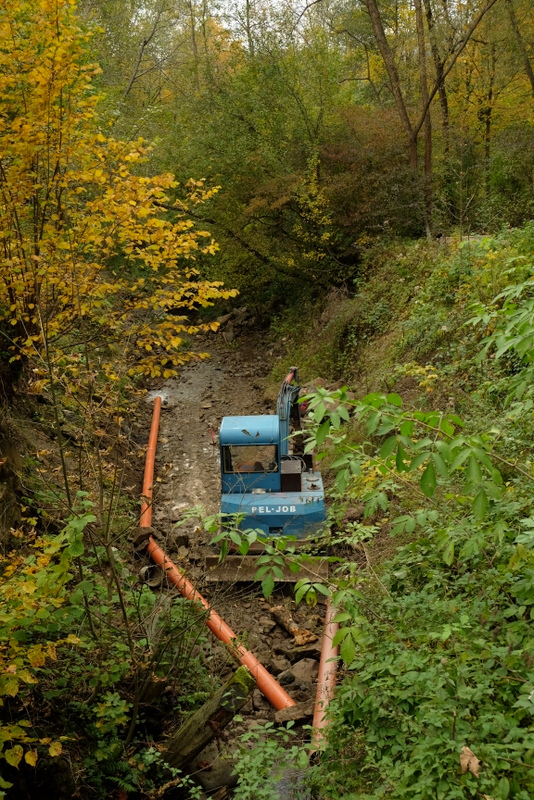Blisko drogi poniżej cerkwi, obok dużej koparki leży kilka rur kanalizacyjnych – wygląda więc na to, że gmina zainwestowała w budowę kanalizacji.