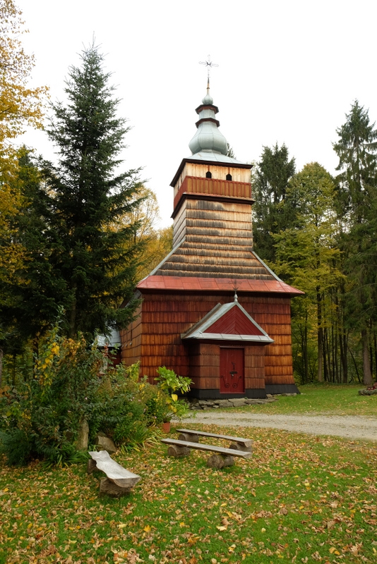 Kolejnym celem było zejście do doliny rzeki Ropy i zwiedzenie zabytkowego cmentarza z I wojny światowej w przysiółku Łęgi za Górą. Później przejście do Wólki, gdzie znajduje się zabytkowa, dawna cerkiew greckokatolicka i zaniedbany cmentarz łemkowski. Na koniec doliną Ropy udaliśmy się do Kasztelu i Skansenu Wsi Pogórzańskiej w Szymbarku.