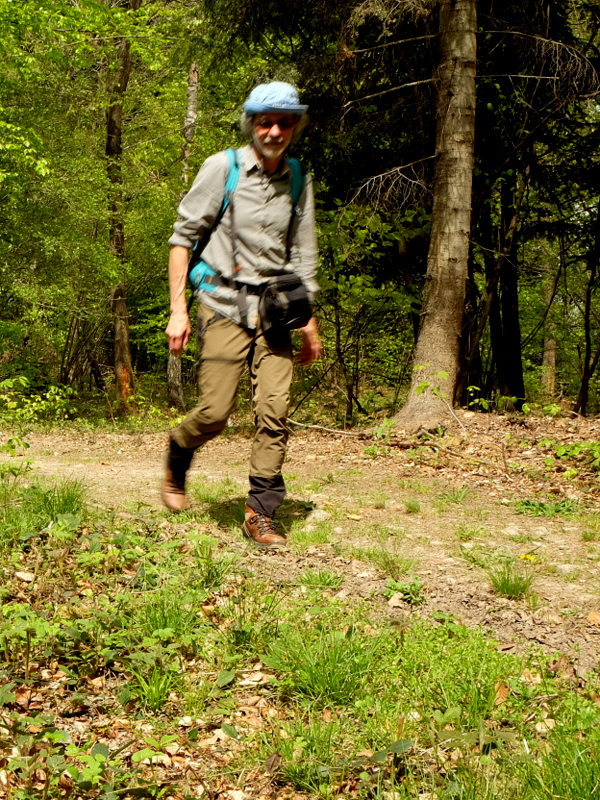 Myślałem, że skoro nie ma tutaj znakowanego szlaku więc nikogo tu nie spotkam. Po chwili z błędu wyprowadziły mnie niezbyt głośne trzaski łamania suchych gałęzi, szelesty i temu podobne odgłosy. Po chwili zobaczyłem jakiegoś wędrowca a kilkanaście metrów niżej podchodzącą powoli kobietę. Okazało się, że też wybrali się na Brusy bez znaków (i właśnie wchodzą od strony Przełęczy Owczarskiej). Poczekałem aż wejdą. Przywitaliśmy się i rozmawiając chwilę, wymieniając uprzejmości oraz spostrzeżenia dotyczące przebiegu wędrówki, rozstaliśmy się życząc sobie pomyślności.