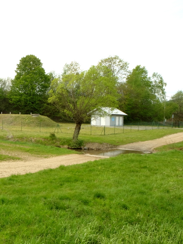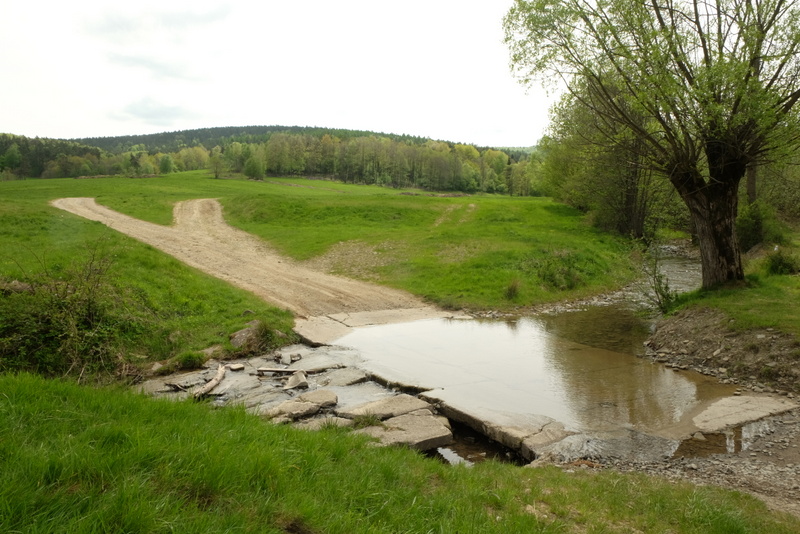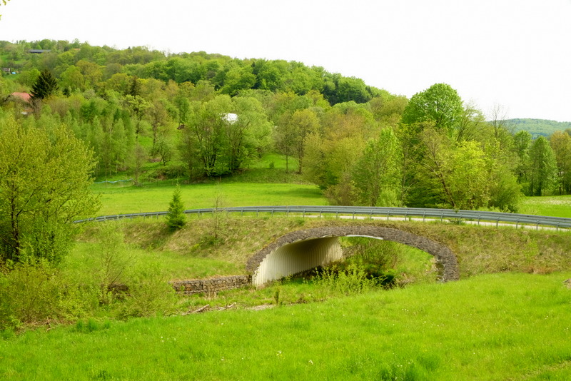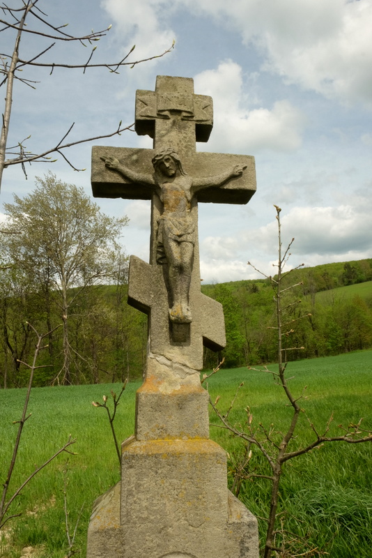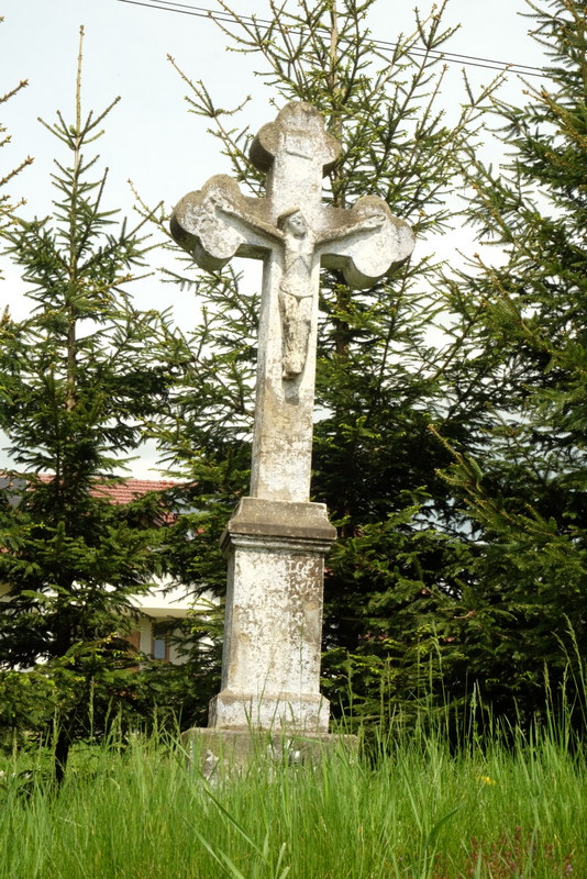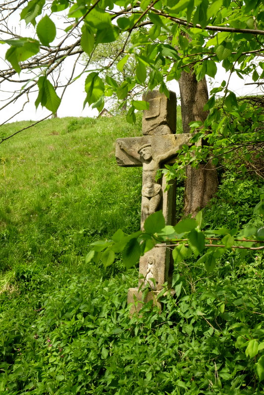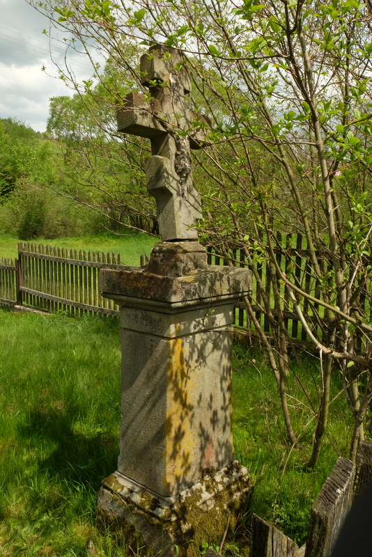 Za ostatnim brodem, po lewej stronie drogi stoi od niedawna ogrodzony siatką budynek Stacji Uzdatniania Wody. Dalej, po prawej stronie drogi, na rozległej łące stoi pochylony, kolejny krzyż łemkowski – ten nieco młodszy bo z 1931 roku, wykonany z kamienia. Również i on był zniszczony – co widać po śladach klejenia.