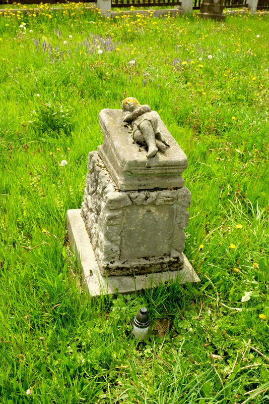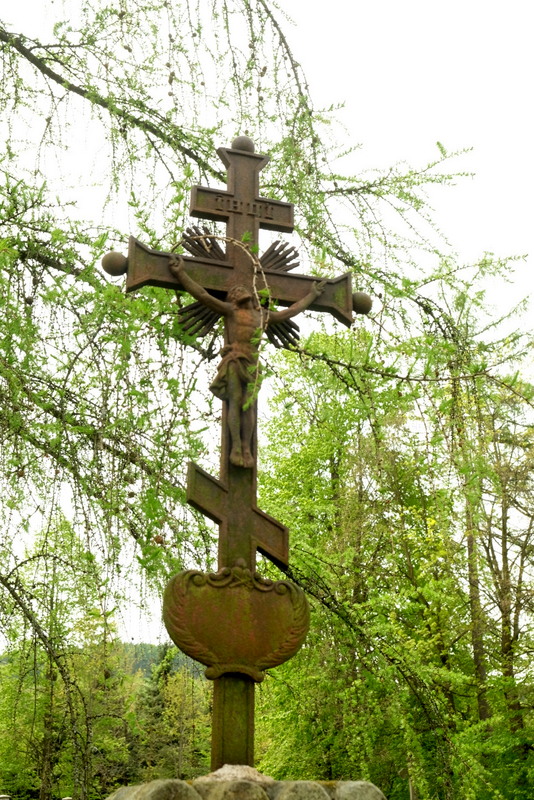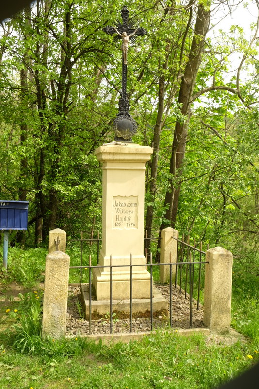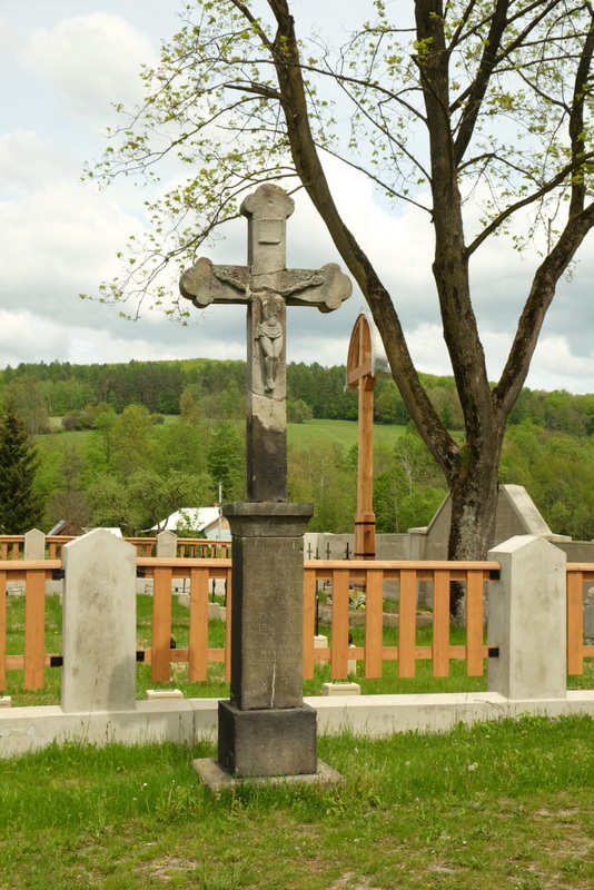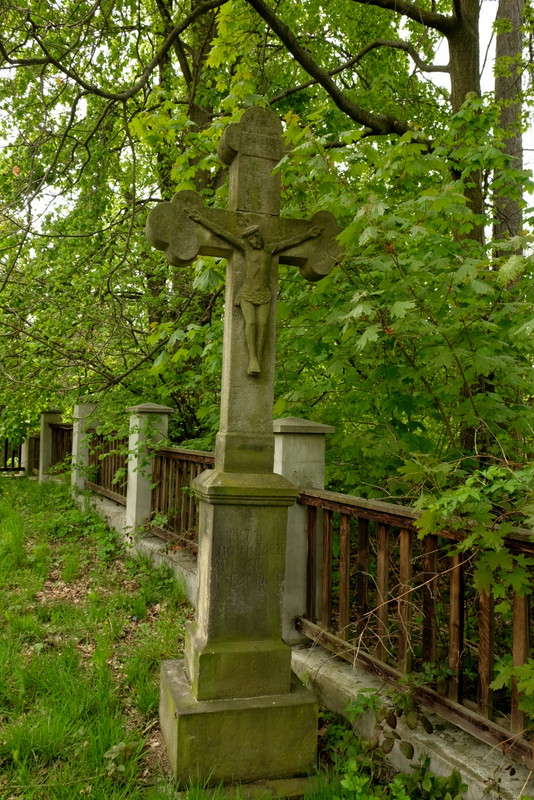 Jednym z nich jest zabytkowy krzyż z 1867r. z piaskowca. Ramiona krzyża zakończone trójlistnie, na krzyżu postać Ukrzyżowanego – niestety bez głowy. Na cokole znajduje się inskrypcja pisana cyrylicą z prośbą o pokój duszy. Jest tu też pięknie rzeźbiona figurka Matki Boskiej z Dzieciątkiem z 1887 roku.