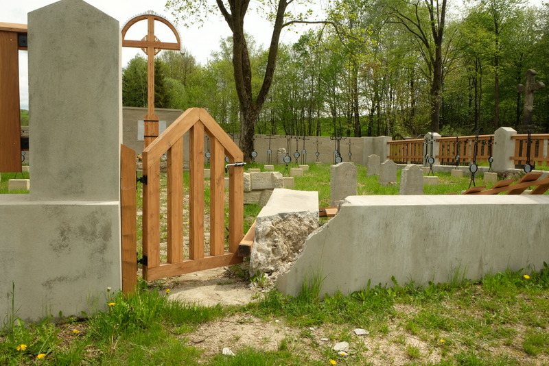 Cmentarz ten niedawno przeszedł poważny remont – wszystko wygląda świeżo. Jest jednak jeden szkopół. Słup bramy wejściowej leży utrącony podobnie jak i drewniane przęsło ogrodzenia. Czy to działanie wandali? Czy może fuszerka robotników? Nie mnie to rozstrzygać. Niesmak tak czy inaczej pozostaje.