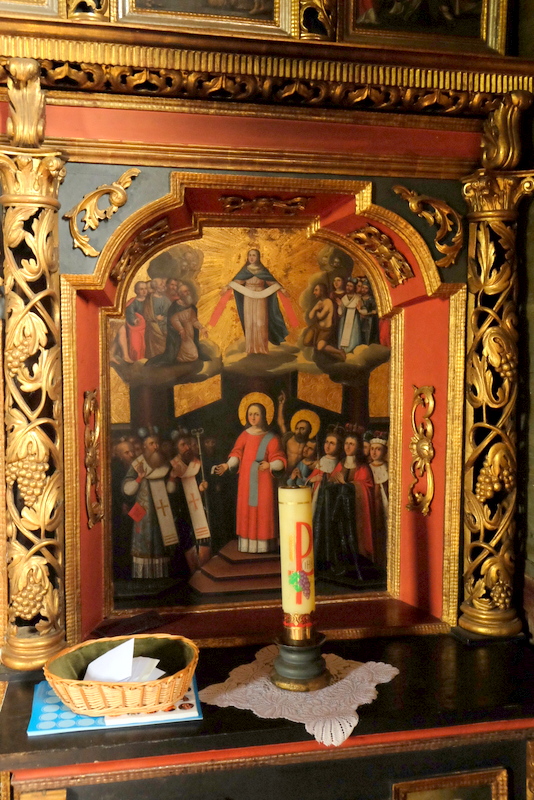 Wiele razy już byłem przy tym kościele i dopiero obecnie udało mi się obejżeć go w środku. Załączam więc kilka zdjęć tak, aby czytajacy bloga też mogli zobaczyć najpiękniejsze obiekty w jego wewnętrzu.