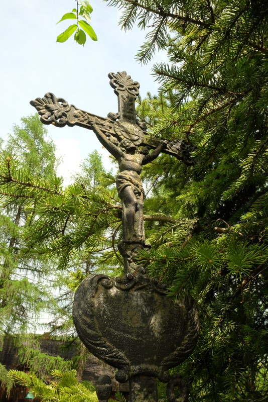 Gdzieś między drugim a trzecim brodem, po drugiej stronie Siarki, zasłonięty krzakami stoi piękny, żeliwny krzyż posadowiony na kamiennym cokole. Patrząc na niego od razu rzuca się w oczy, że wygląda jakoś nienaturalne. Widać, że był utrącony i ktoś próbując go naprawić wstawił utrąconą, żeliwną część krzyża odwrotnie – tyłem do frontu cokołu. Na cokole widnieje data 1891. Dokładnie przedstawiłem go tutaj.