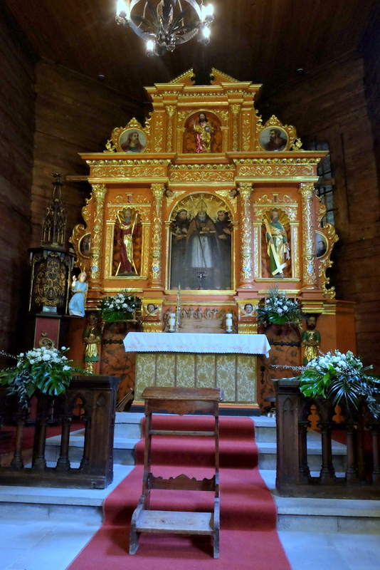 Czasu wystarczyło mi jednak na obejrzenie od środka zabytkowego, drewnianego kościółka, który – tak jak się tego spodziewałem – był otwarty.
