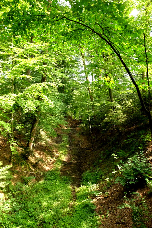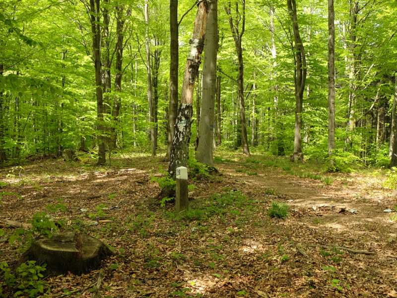 Szlak omija niezbyt wyeksponowaną i zarazem zalesioną kulminację Obocza z północnej strony. Dalej lekko się obniża po czym omija rówież niczym nie wyróżniający się wierzchołek Huszczy. Tutaj, wokół Huszczy widać sporo śladów po prowadzonej wycince drzew (To temat drażliwy i denerwujący więc nie będę się go poruszał.)