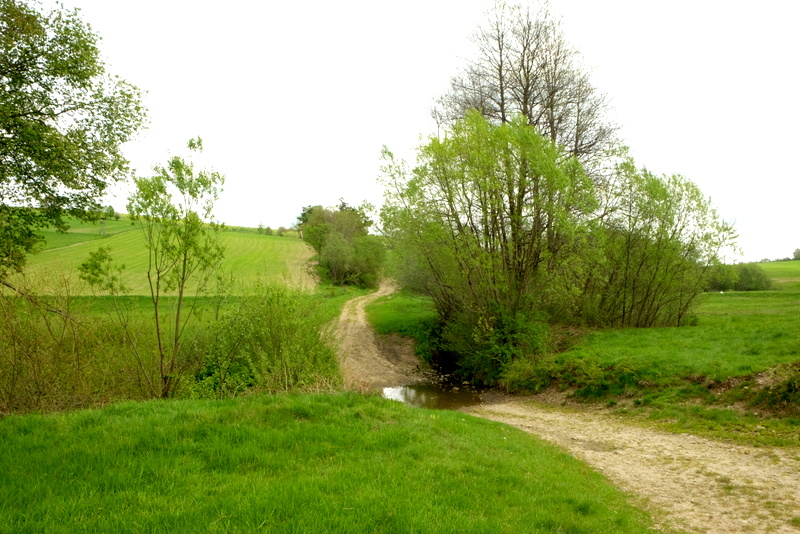 Można tutaj odszukać widokową polną dróżkę prowadzącą na południowy zachód (tak kilka lat temu schodziłem do Owczar Górnych – polecam).