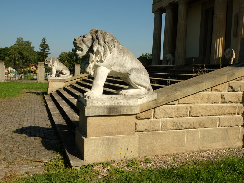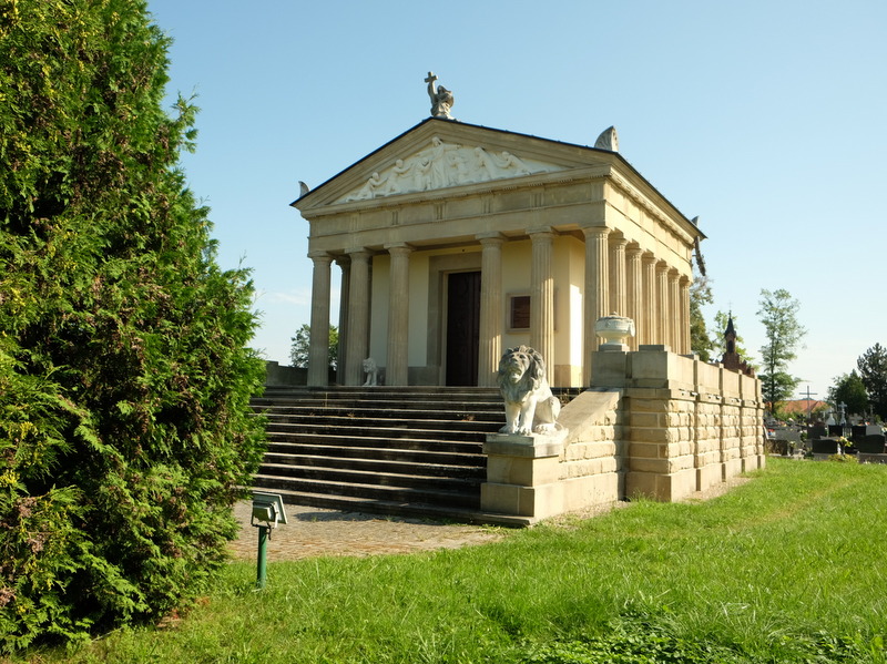 Budowę mauzoleum ukończono w 1928 roku. To inspirowany antycznymi budowlami monumentalny grobowiec, wykonany z piaskowca ciosanego. Wejścia na szerokie schody i do mauzoleum strzegą – jednocześnie je zdobiąć – potężne posągi lwów a dekorację schodów uzupełniają dwa kamienne wazony. Budynek otacza 18 doryckich kolumn zwężających się ku górze. Fasadę wieńczy trójkątny fronton z płaskorzeźbą postaci Chrystusa. Dwuspadowy dach kryty blachą zdobią elementy w kształcie liścia palmy.