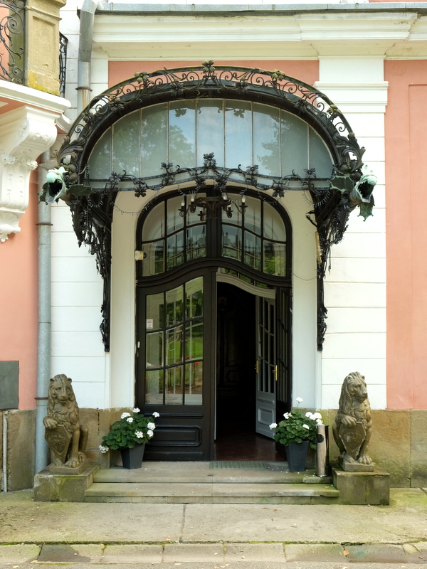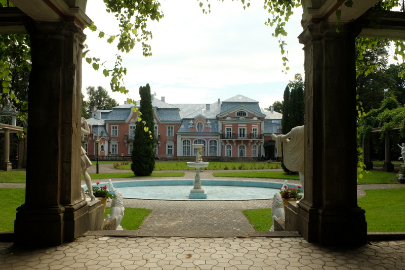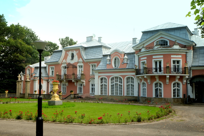 Różowy budynek pałacu z białymi wstawkami i dużymi, sięgającymi podłogi oknami oraz zróżnicowaną bryłą dachów z mansardowymi oknami, zachwyca bogactwem form architektonicznych. Bogato zdobione elewacje wzmocnione kamiennymi słupami i podporami, na których opierają się balkony z kutymi balustradami tylko przydają uroku temu pałacowi.