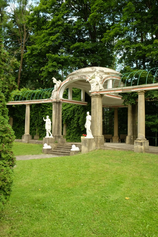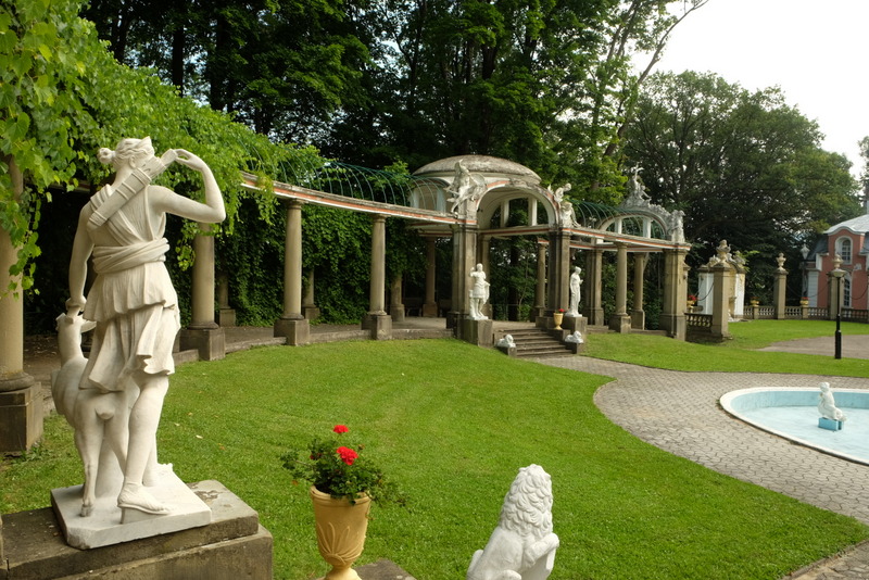 Sam park składa się z czterech głównych części i ogrodu. Od strony zachodniej zaproktowano reprezentacyjny podjazd i ogromną pergolę.