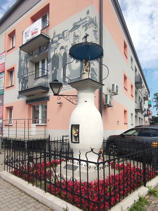 W Gorlicach Łukasiewicz skonstruował pierwszą w świecie uliczną lampę naftową. Umieszczono ją na oryginalnej kapliczce o beczkowatym cokole, z Chrystusem Frasobliwym pod baldachimem.